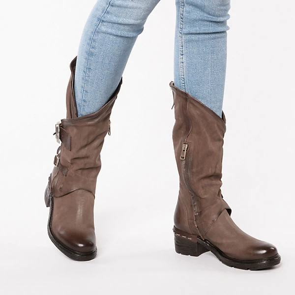 Die Stiefel der Marke A.S.98 sorgen stets für einen trendigen Style. Ein stilvoller Look gepaart mit hohem Komfort gelingt dank des mittelhohen Blockabsatzes. Das Fußbett besteht aus natürlich atmungsaktivem Echtleder, das ein angenehmes Tragegefühl unterstützt. Diese Schuhe schließen per Reißverschluss. Das Obermaterial zeichnet sich durch das hochwertige, echte Rindsleder aus.