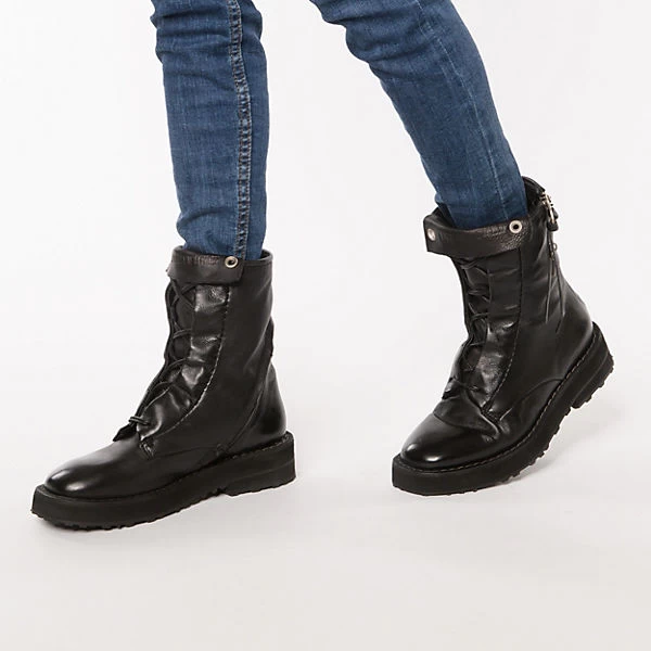 Die Schnürstiefeletten von A.S.98 sorgen stets für einen schicken Style. Das Fußbett besteht aus natürlich atmungsaktivem Echtleder, das ein angenehmes Tragegefühl begünstigt. Das Futter ist aus wärmendem Lammfell. Das Obermaterial zeichnet sich durch das echte Rindsleder aus. Die Schuhe sind mit einem Reißverschluss versehen. Der bequeme Blockabsatz bietet einen modischen Auftritt.