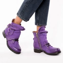 Rockige Schnürstiefeletten im Biker Look mit innenliegendem Zipper und nietenbesetzten Lederriemen auf derber Sohle