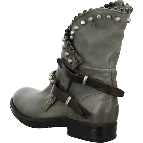 A.S. 98 Damen Stiefeletten VERTI Grau Glattleder – praktischer Reißverschluss – 2 Riemen mit Nieten über dem Spann und im Schaftbereich – Einstieg mit Nieten verziert – verstärkter Zehen- und Fersenbereich – gepolsterte Leder-Decksohle – flexible, rutschhemmende Laufsohle